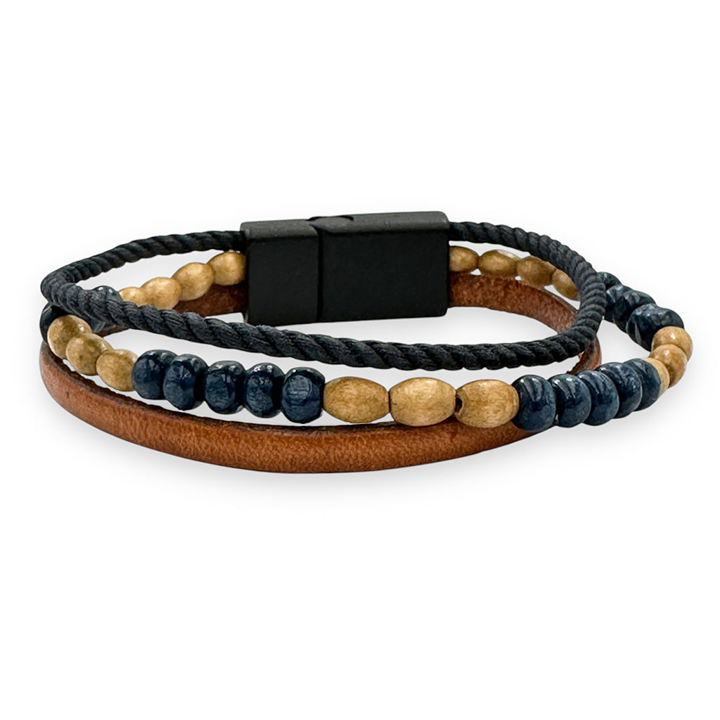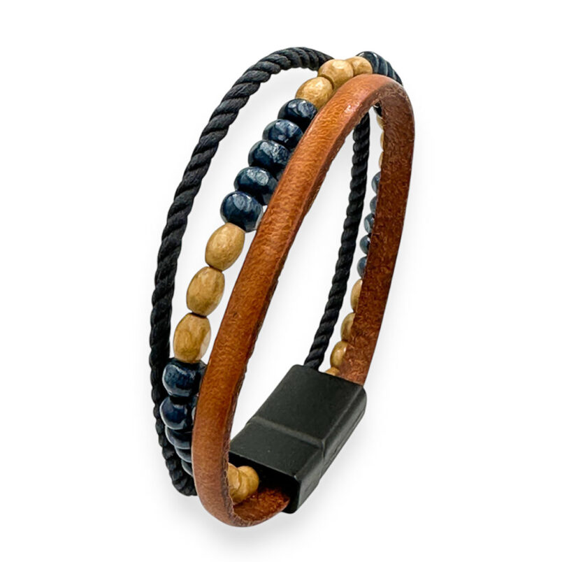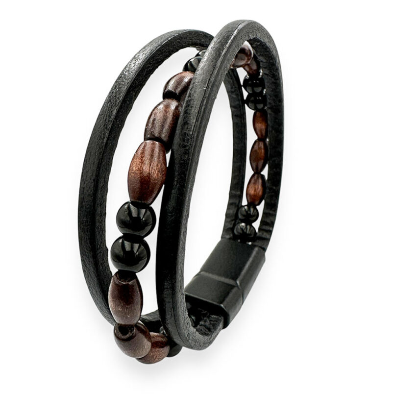 Bransoletka skórzana męska z koralikami drewnianymi