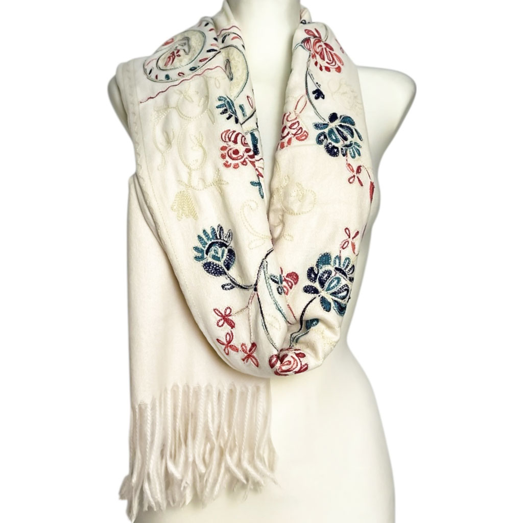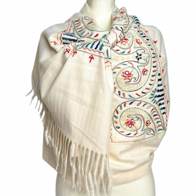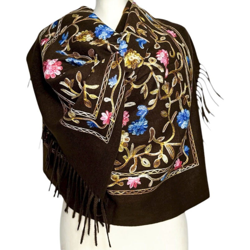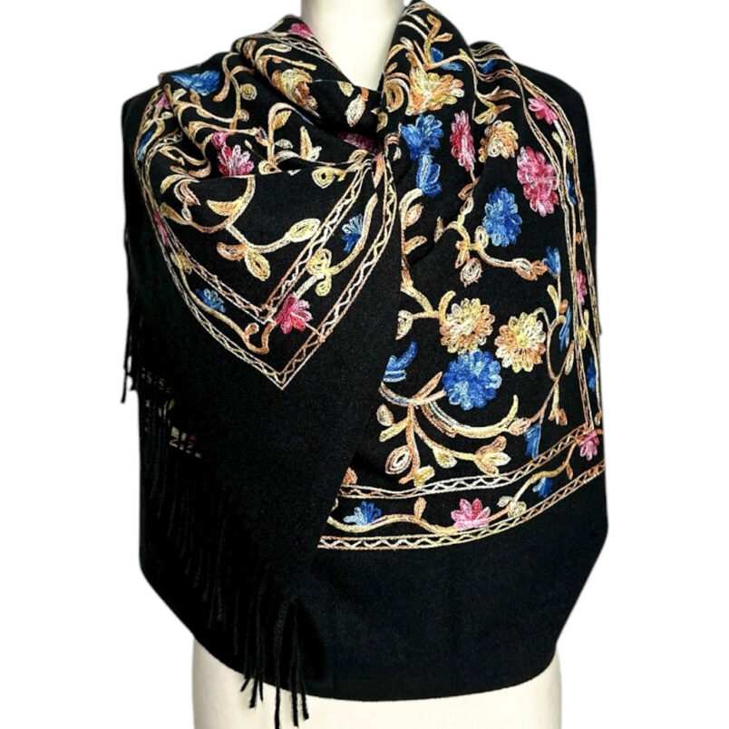 Szale wełnianeSzal wełniany ciepły haftowany w kolorze czarnym