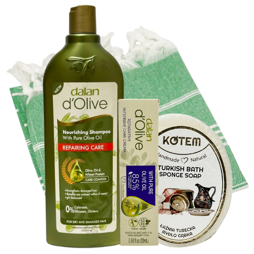 Akcesoria kąpieloweZestaw Hammam z ręcznikiem i kosmetykami Dalan
