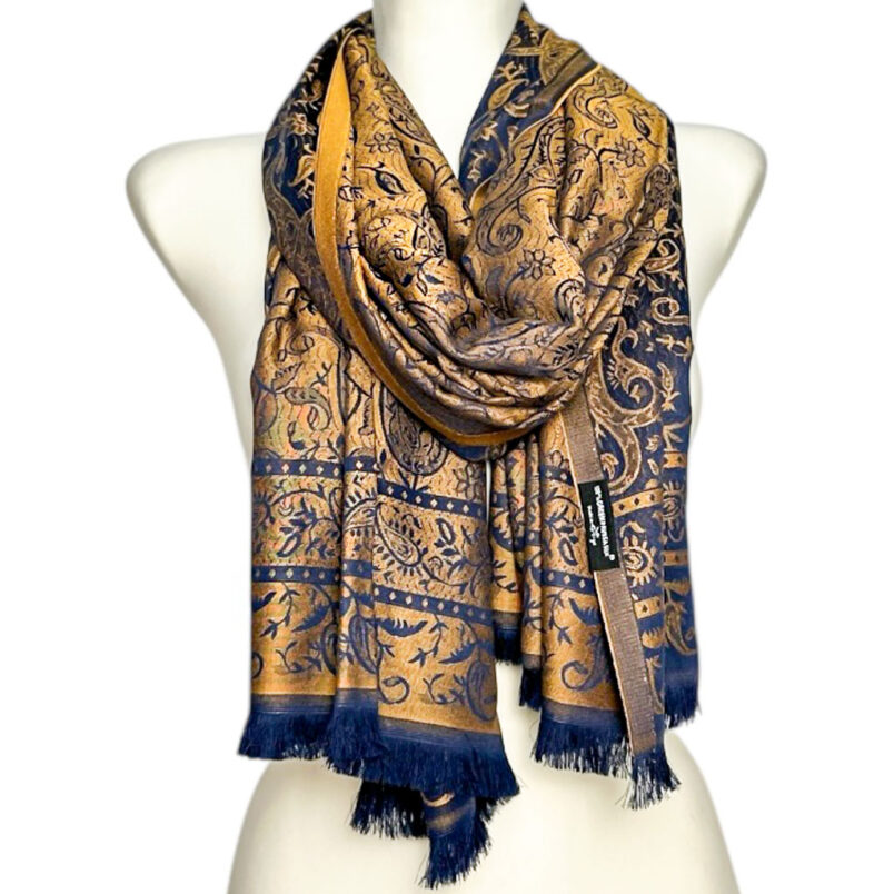 Oceniono 0 na 529.99 zł Dodaj do koszykaSzale tureckie PashminaSzal damski w kolorze granatowo złotym