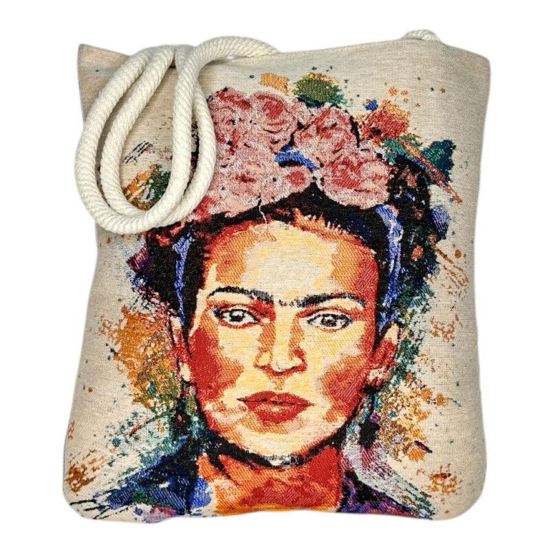 Torebki gobelinoweTorba na ramię z motywem Fridy Kahlo w kwiatach