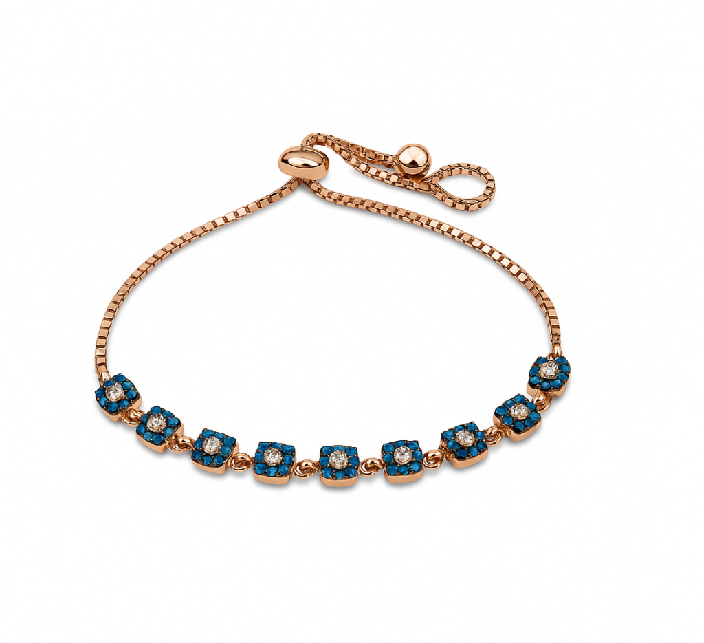 Wyjątkowym akcentem są turkusowe cyrkonie, które nadają bransoletce świeżości i oryginalności. Cyrkonie o intensywnym, turkusowym kolorze pięknie odbijają światło, tworząc efektowną, błyszczącą kompozycję. Dzięki temu bransoletka doskonale sprawdzi się zarówno na co dzień, jak i podczas wyjątkowych okazji.