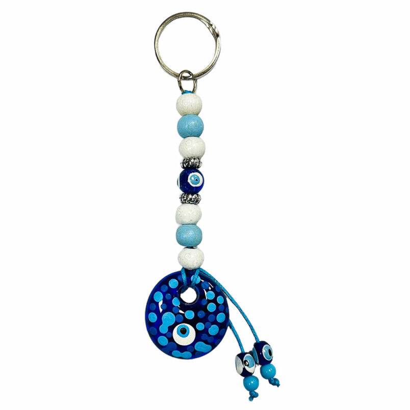 Brelok ze szklanym Okiem Proroka to oryginalna turecka zawieszka do kluczy choć sprawdza się również jako ozdoba torby. Breloczek ze względu na symbol “Oko Proroka “ uznawany jest za rodzaj talizmanu, gdyż według wierzeń ma on odpierać złą energię. To oryginalny dodatek, który na pewno ucieszy miłośników Turcji i orientu.