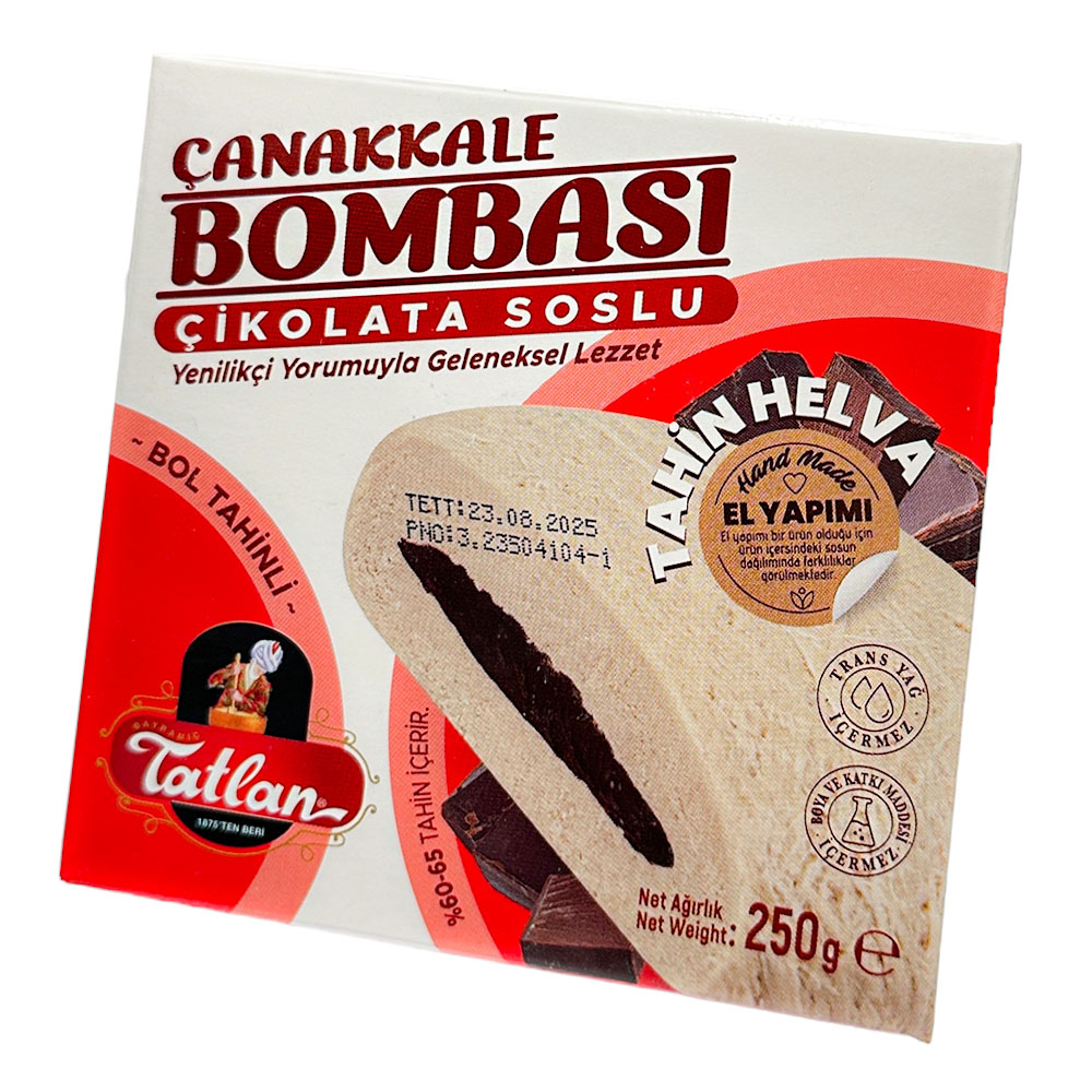 Turecka chałwa o sezamowa z nadzieniem czekoladowym Firmy Tatlan To niezwykły smak ,pozwoli przenieść Ci się choć na chwilę do krajów bliskiego wschodu gdzie chałwa to najpopularniejszy deser.. Jest słodka więc pasuje idealnie do filiżanki herbaty lub kawy .Możesz również wykorzystać ja jako jeden ze składników ciastek czy kremów. W Turcji chałwa to jest jednym z produktów który pojawia sią na tureckim stole podczas śniadania. Turcy ja uwielbiają i często jedzą razem z chlebem.