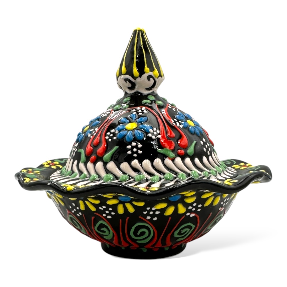 Ceramiczna ręcznie malowana cukiernica z Turcji to wyjątkowy przykład tradycyjnego rzemiosła, które łączy estetykę i funkcjonalność. Wykonana z wysokiej jakości ceramiki, cukiernica wyróżnia się precyzyjnym wykonaniem i unikalnym designem, charakterystycznym dla tureckiego wzornictwa. Każdy egzemplarz jest starannie malowany ręcznie, co sprawia, że każdy produkt jest niepowtarzalny.