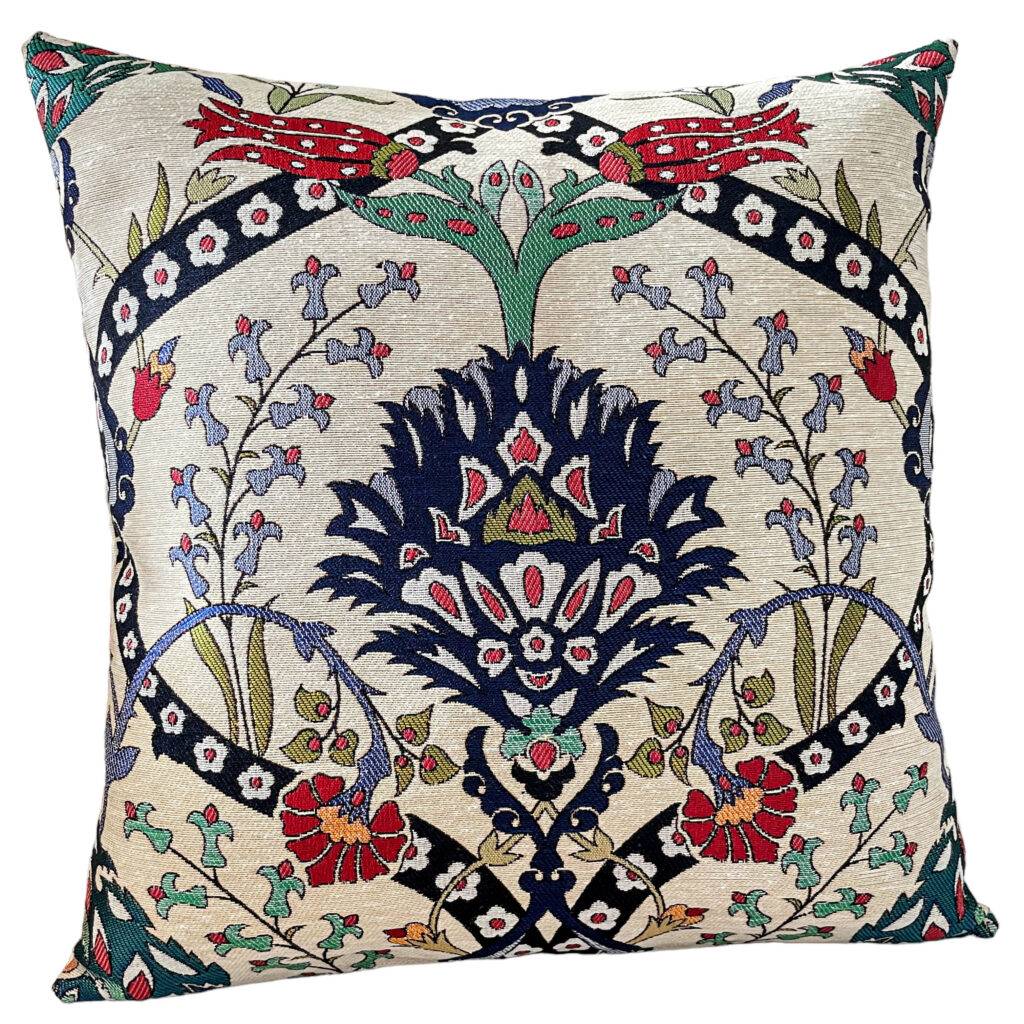Kolorowa dekoracyjna poszewka w kwiaty to wyjątkowy dodatek który wniesie do Twojego domu odrobinę tureckiego stylu . Wykonane z najwyższej jakości grubego materiału – Tkanina gobelinowa , z dbałością o każdy detal będą eleganckim , gustownym dodatkiem do salonu, sypialni czy pokoju dziennego.. Przepięknie tkane tureckie wzornictwo i żywe kolory zachwycą każdego Ten wzór poszewki zdobią tureckie wzory . Tył poszewki to kolor jednolity a po jej środku znajduje się zamaskowany suwak . Taki model będzie świetnie łączył się z innymi poduszkami jednokolorowymi .