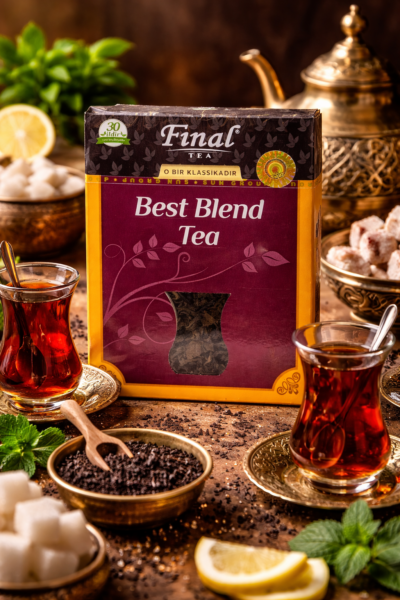 Final Tea Best Blend to wysokiej jakości czarna herbata liściasta, ceniona za intensywny aromat i głęboki, wyrazisty smak. To klasyczna czarnej herbata, idealna do codziennego parzenia w tradycyjnym czajniku lub zaparzaczu.