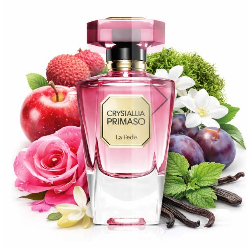 Crystallia Primaso 100 ml to zmysłowa kompozycja zapachowa łącząca soczyste owoce z delikatnymi kwiatami i ciepłą, otulającą bazą. Zapach został stworzony dla kobiet, które cenią elegancję, subtelną słodycz i nowoczesną świeżość w jednym flakonie. To propozycja idealna zarówno na co dzień, jak i na wyjątkowe okazje.