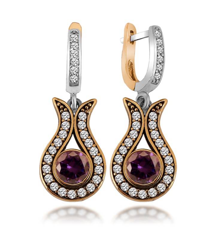 Przepiękne , wykonane ręcznie Kolczyki srebrne tulipany ottomańskie z ametystemo oryginalna biżuteria srebrna damska tureckie rękodzieło prosto z Turcji. Wyjątkowy niespotykany model który podkreśli Twoją kobiecość i sprawi ze poczujesz się na prawdę wyjątkowo. Biżuteria w całości wykonana została z najwyższej jakości srebrna p.925 oraz dodatku brązu w celu zachowania oryginalności biżuterii ottomanskiej. Srebro pokryte jest warstwą rodu które ma chronić biżuterię przed ciemnieniem i uszkodzeniem. Przednia część kolczyków zdobiona jest cyrkoniami , natomiast tylna część to pięknie ażurowe zdobienia. Kolczyki srebrne tureckie to z pewnością idealny pomysł na bardzo oryginalny prezent .