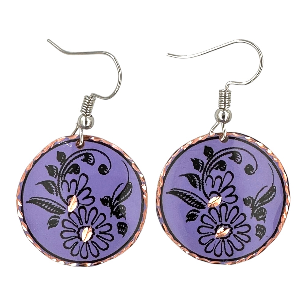 kolczyki wiszące miedziane z fiolety