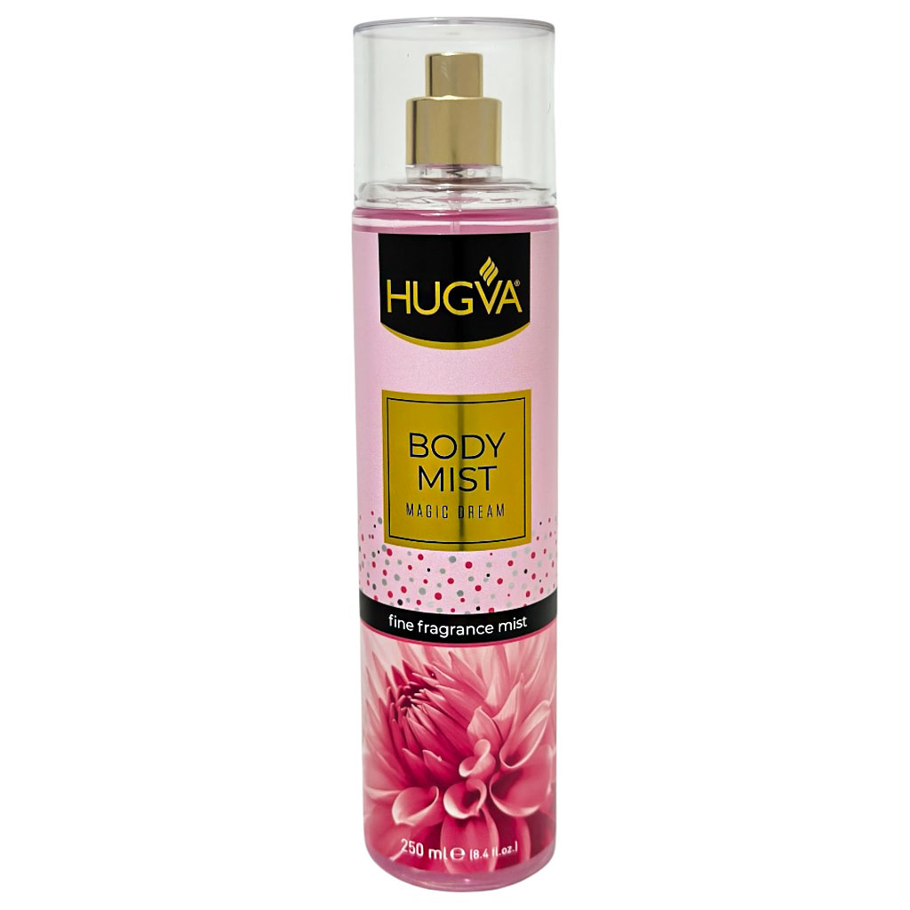 Mgiełka do ciała marki Hugva Magic Dream to lekki, odświeżający spraye, który łączą przyjemny zapach z codzienną pielęgnacją skóry. Ten zapach tu kwiatowo pudrowe nuty. Mgiełka do ciała marki Hugva daję subtelną i trwałą woń przez cały dzień.To doskonały wybór dla osób szukających lekkiego, codziennego zapachu, który subtelnie podkreśli ich obecność.