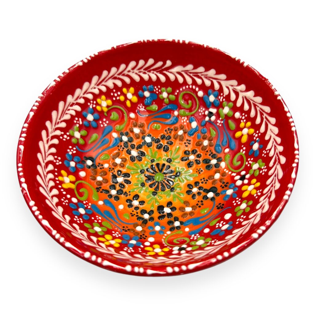 Miseczka ręcznie malowana 15 cm  to wyjątkowy i użytkowy model ceramiki tureckiej .  To oryginalny turecki dodatek do Twojej kuchni. Jeśli lubisz wprowadzać do swojego pomieszczenia orientalne dodatki  to  właśnie ta propozycja jest dla Ciebie.  Dekoracyjna  miseczka ceramiczna turecka wykonana jest tradycyjną turecką sztuką tworzenia ceramiki.  Wykonanie takiej ceramicznej miseczki  składa się z kilku etapów., Najważniejszym  z nich jest wypalanie w piecu które trwa do 12 h.  w końcowym procesie miseczki  ceramiczne są pokryte szkliwem i kolejny raz wypalanie są w piecu. . Tureckie wzornictwie ,piękne tureckie motywy – ręcznie malowane   cudowne kolory  sprawia że miseczka będzie stanowiła również ciekawy element dekoracyjny kuchni  czy stołu . Może ona stanowić również trafiony prezent dla osoby interesującej się kulturą turecką , bliskowschodnią.
