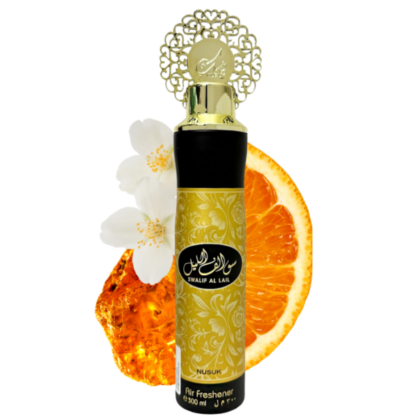 NUSUK Swalif Al Lail to odświeżacz powietrza o wyjątkowym, orientalnym zapachu, inspirowanym luksusowymi perfumami z Dubaju. Połączenie nut owocowych, kwiatowych i drzewnych sprawia, że każde wnętrze staje się przyjemne, eleganckie i harmonijne.