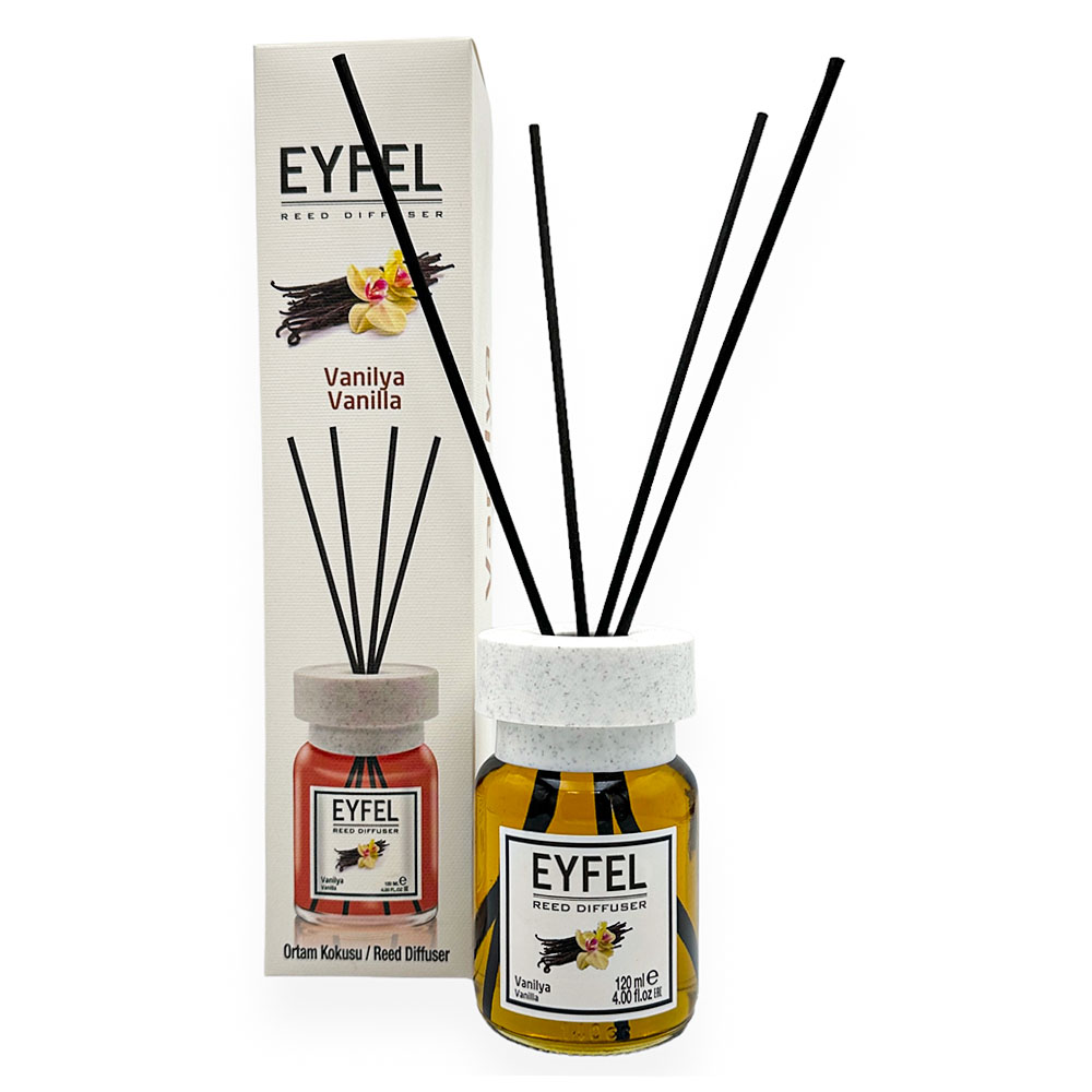 Poczuj ciepło i komfort z patyczkami zapachowymi Eyfel Wanilia . Te eleganckie patyczki, nasączone bogatym aromatem wanilii, przynoszą do Twojego domu uczucie spokoju i relaksu, jakie daje słodki i kojący zapach wanilii