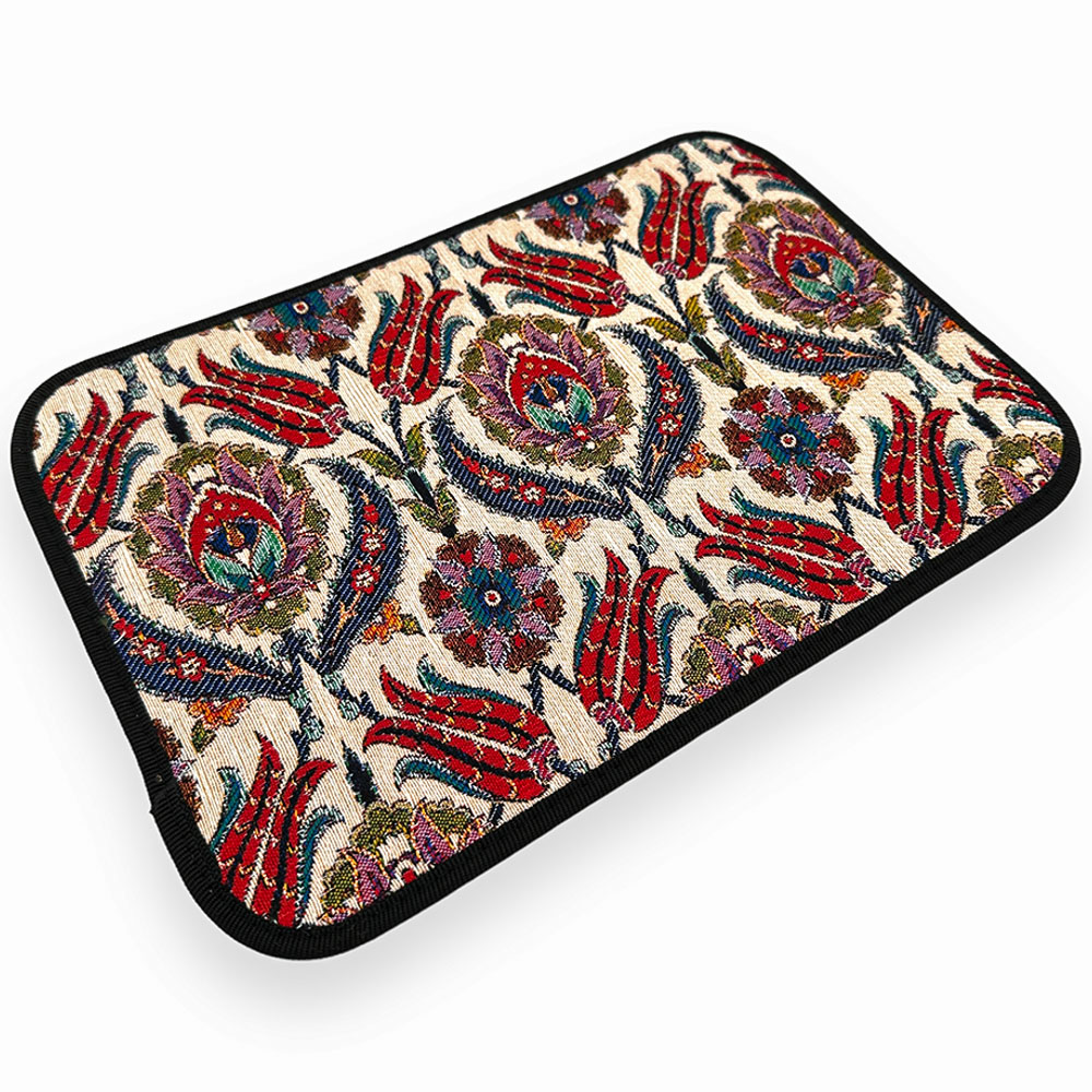 Uroczy mini turecki dywanik wykonany z tkaniny gobelinowej to dodatek który wniesie do Twojego domu odrobinę tureckiego stylu. Turecki dywanik w wersji miniaturowej , może służyć jako dekoracja stołu , podkładka pod talerz lub jako podkładka pod myszkę dywanik ( myszka działa bez najmniejszego problemu ) . Dodaj koloru do swojego wnętrza . Turecki dywanik w formie podkładki to również nietuzinkowy pomysł na prezent dla bliskiej osoby .
