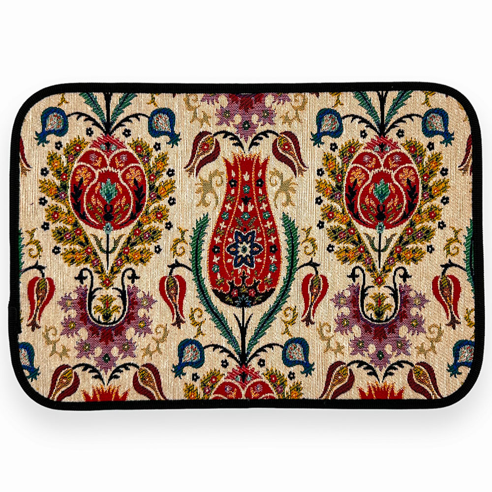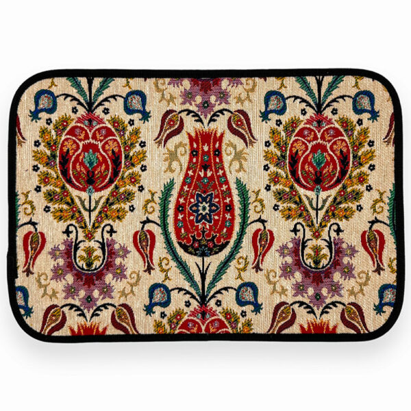 Uroczy mini turecki dywanik wykonany z tkaniny gobelinowej to dodatek który wniesie do Twojego domu odrobinę tureckiego stylu. Turecki dywanik w wersji miniaturowej , może służyć jako dekoracja stołu , podkładka pod talerz lub jako podkładka pod myszkę dywanik ( myszka działa bez najmniejszego problemu ) . Dodaj koloru do swojego wnętrza . Turecki dywanik w formie podkładki to również nietuzinkowy pomysł na prezent dla bliskiej osoby .