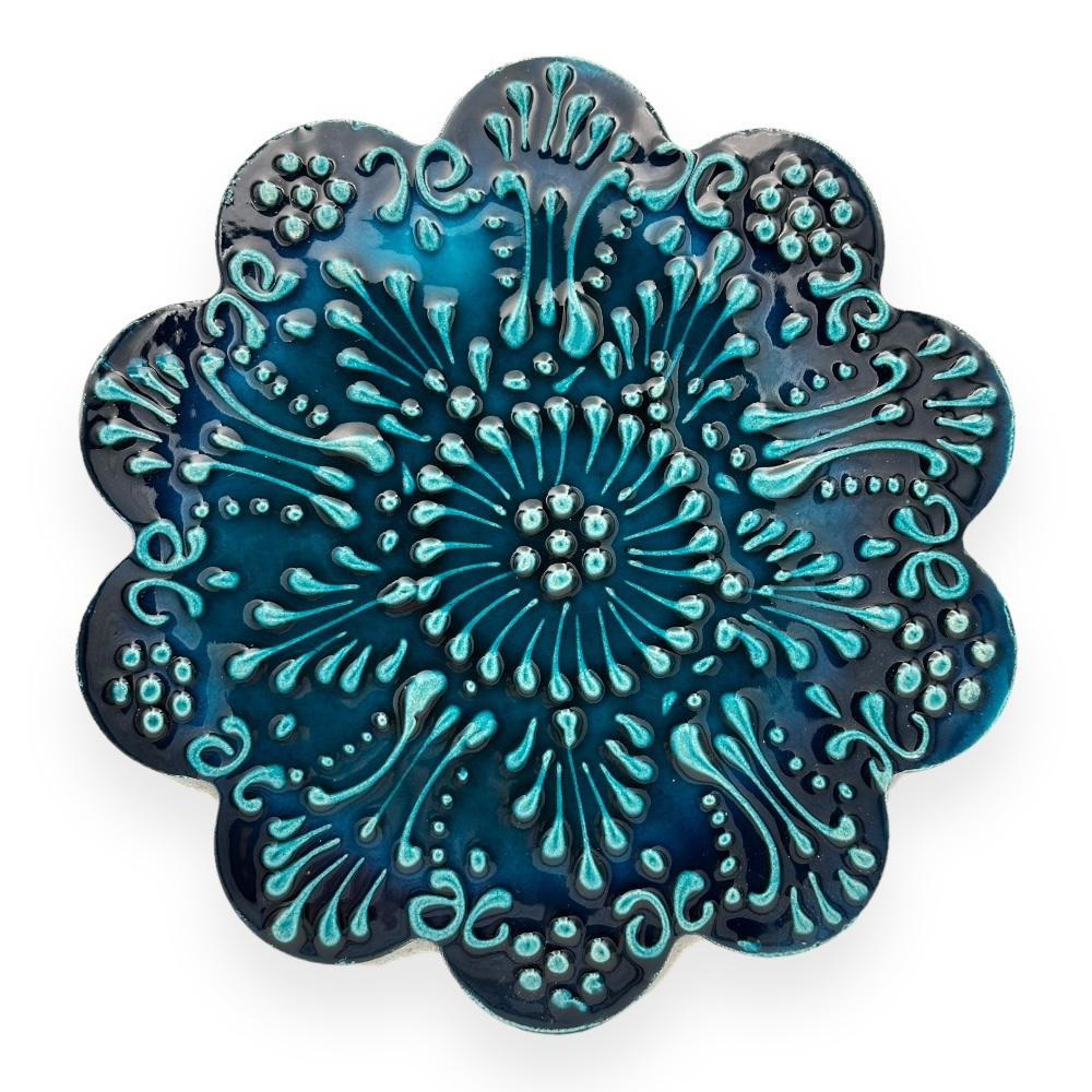 Kolorowa ręcznie malowana ceramika w postaci podkładki na blat kuchenny to wyjątkowy turecki dodatek do Twojej kuchni. Jeśli lubisz wprowadzać do swojego pomieszczenia turecką ceramikę to właśnie ta propozycja jest dla Ciebie. Dekoracyjna ceramiczna podkładka pod garnek wykonana jest tradycyjną turecką sztuką wykonywania ceramiki. Wykonanie takiej podkładki składa się z kilku etapów., Najważniejszym z nich jest wypalanie w piecu które trwa do 12 h. w końcowym procesie podstawki ceramiczne są pokryte szkliwem i kolejny raz wypalanie są w piecu. Daje to pewność że przedmiot jest w 100 % odporny na wysoką temperaturę naczynia jakie będzie stawiane na podkładkę . Tureckie wzornictwie ,piękne tureckie kwiaty , cudowny kolor sprawi że podstawka pod gorący garnek będzie stanowiła również ciekawy element dekoracyjny kuchni czy stołu .
