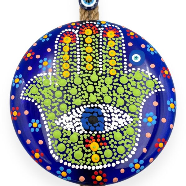 Jeśli lubisz orientalne dodatki w swoim domu Twoją uwagę powinna zwrócić Talizman z okiem proroka na ścianę . Taki oryginalny dodatek cudownie ozdobi ścianę lub drzwi. Można również powiesić ją na tarasie balkonie któremu wnętrzu doda bliskowschodniego smaku. Dekoracja z okiem proroka stanowi również niezwykle oryginalny pomysł na nietuzinkowy a zarazem niezobowiązujący prezent. Z pewnością sprawi radość osobie która interesuje się kulturą turecka ale również światem orientu.