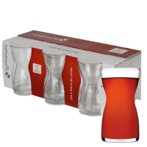 Poczuj się jak w prawdziwej tureckiej herbaciarni i delektuj się w zaciszu swojego domu turecką herbatą a pomogą Ci w tym tureckie szklaneczki z kompletem spodków do szklanek tureckich marki Pasabahce. Komplet składa się z 6 spodków które stanowią idealną podstawkę pod turecką szklankę tulipankę. Tureckie szklanki zwane są w Turcji tulipankami a to dzięki ich kształtowi który przypomina kwiat tulipana . Herbata turecka jest nazywana narodowym napojem Turcji. Pije się ją zarówno w zimne mroźne dni jak również w upalne lato .