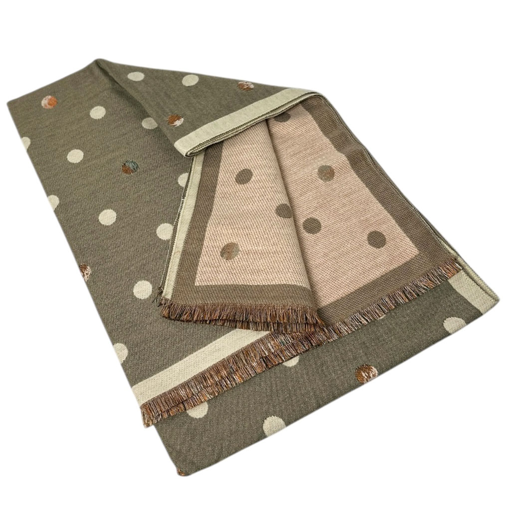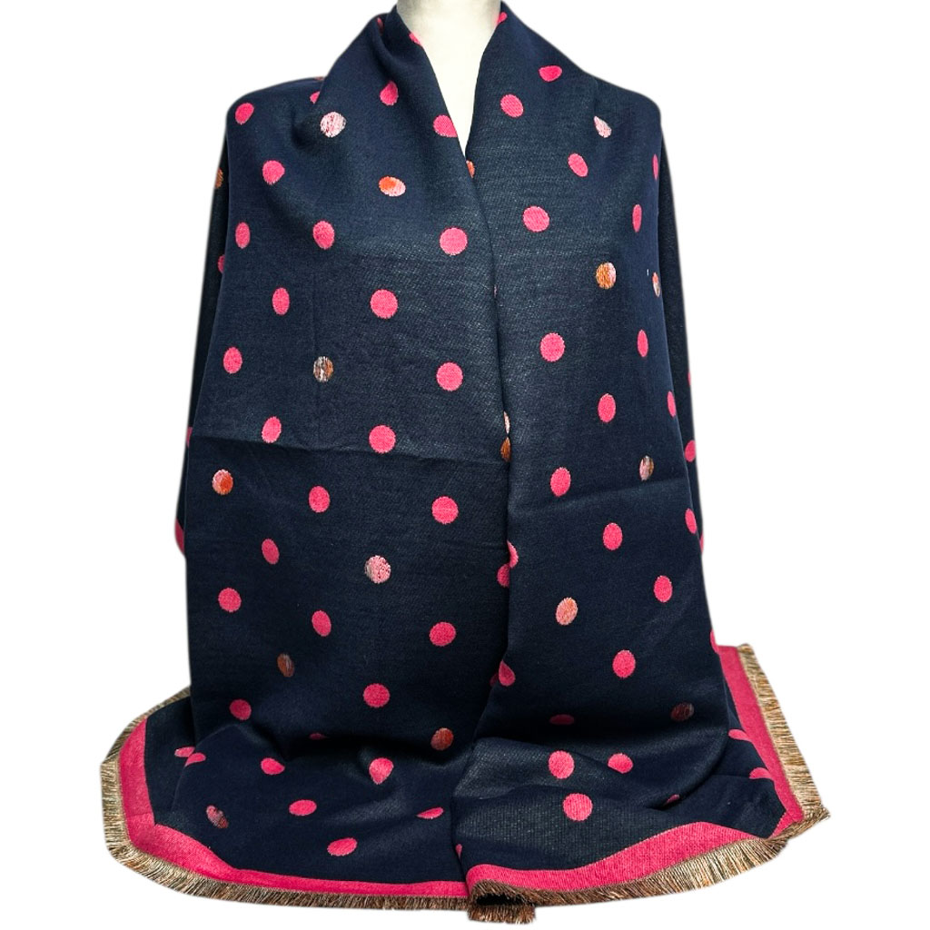 Ciepły szal damski z wiskozy – dwukolorowy w grochy