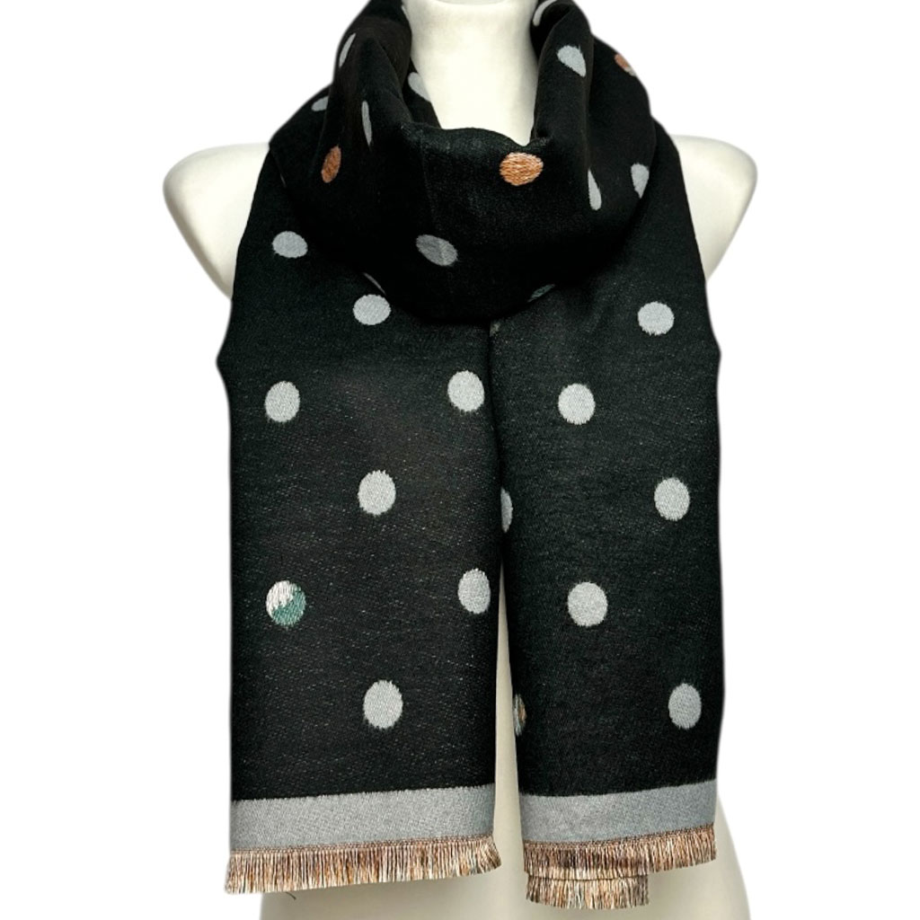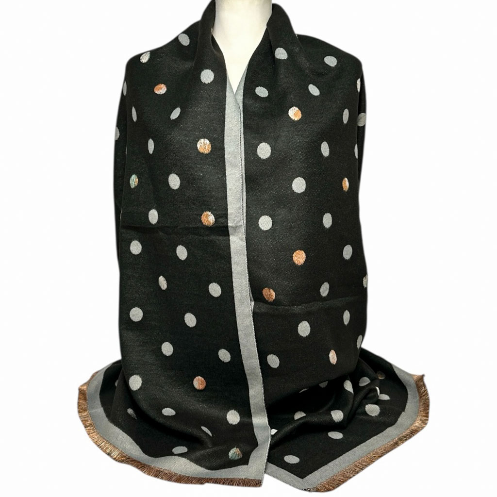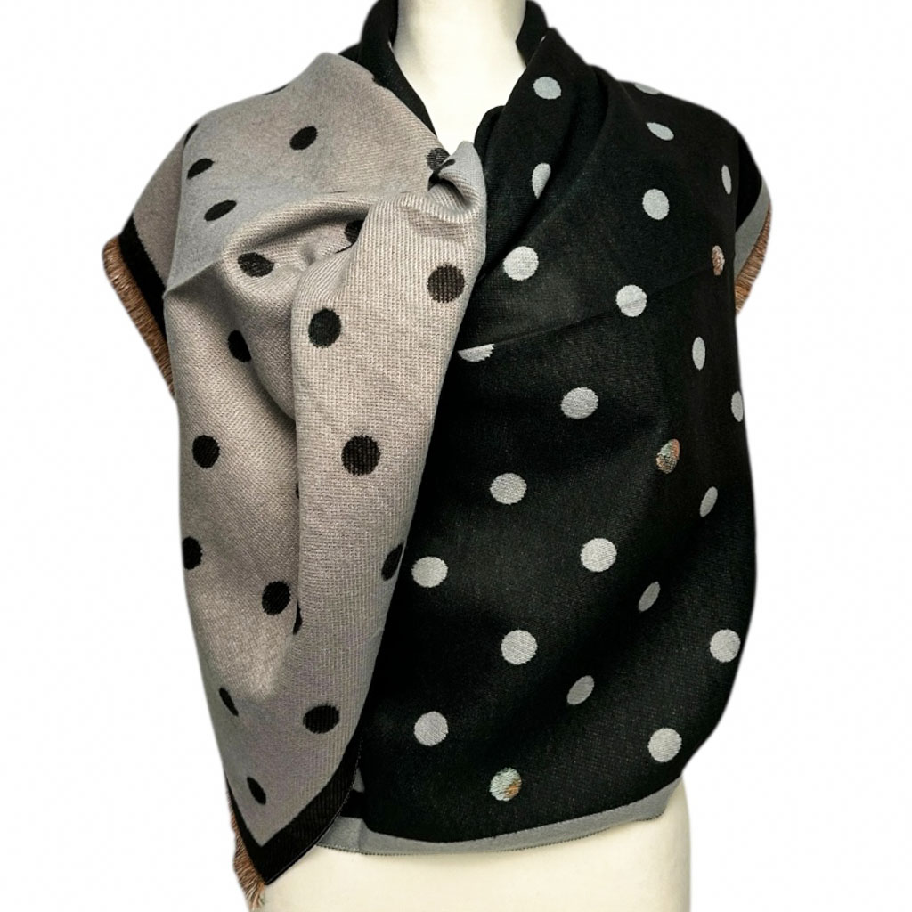 Ciepły szal damski z wiskozy – dwukolorowy w grochy