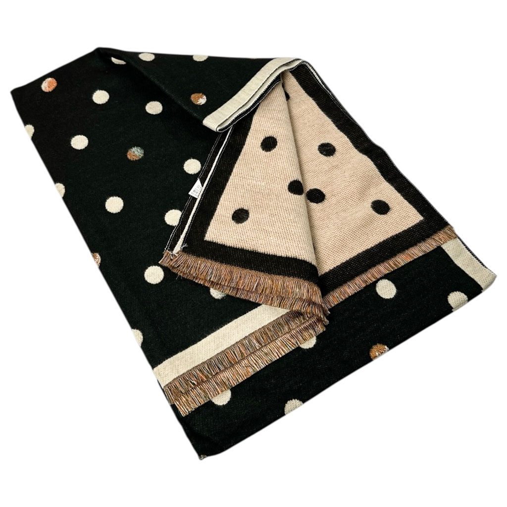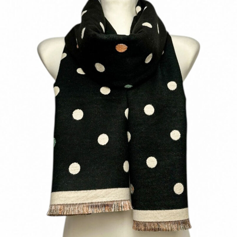 Ciepły szal damski z wiskozy – dwukolorowy w grochy