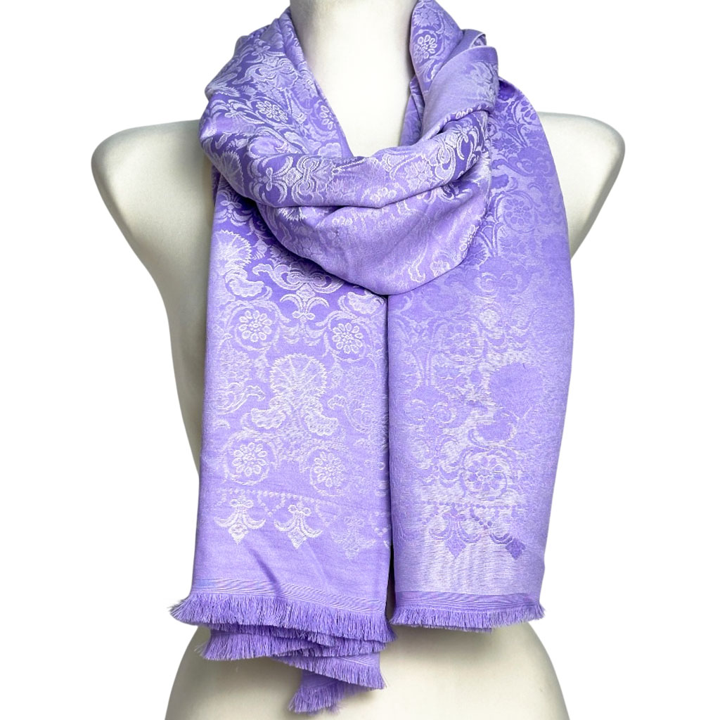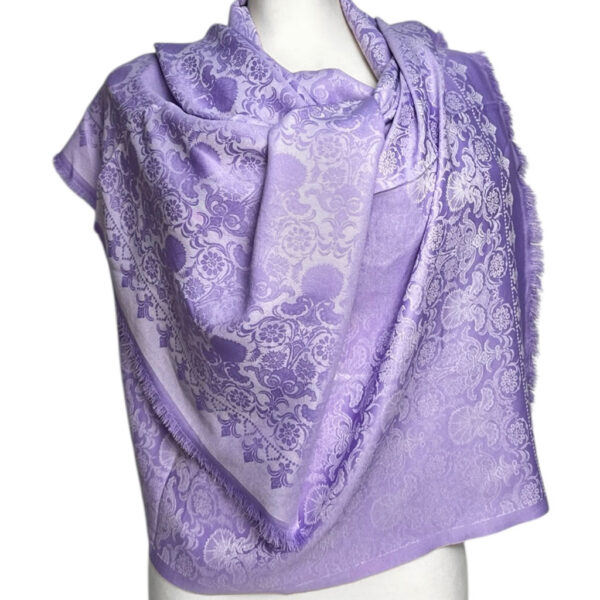 Szykowny szal damski fioletowy to wyjątkowy dodatek, który ożywi Twoją stylizację. To niezwykle elegancki i subtelny szal, idealny na różne okazje. Wyprodukowany w Turcji, w mieście Bursa, słynącym z produkcji jedwabnych i kaszmirowych szali. Długość dostosowana do swobodnego oplecenia szyi lub noszenia na ramionach. Ten szal to nie tylko modowy akcent, ale również wyraz klasy i gustu. Świetnie sprawdzi się na specjalne okazje, takie jak wesela czy karnawałowe przyjęcia. Będzie idealny jako elegancki szal do płaszcza, żakietu, sukienki