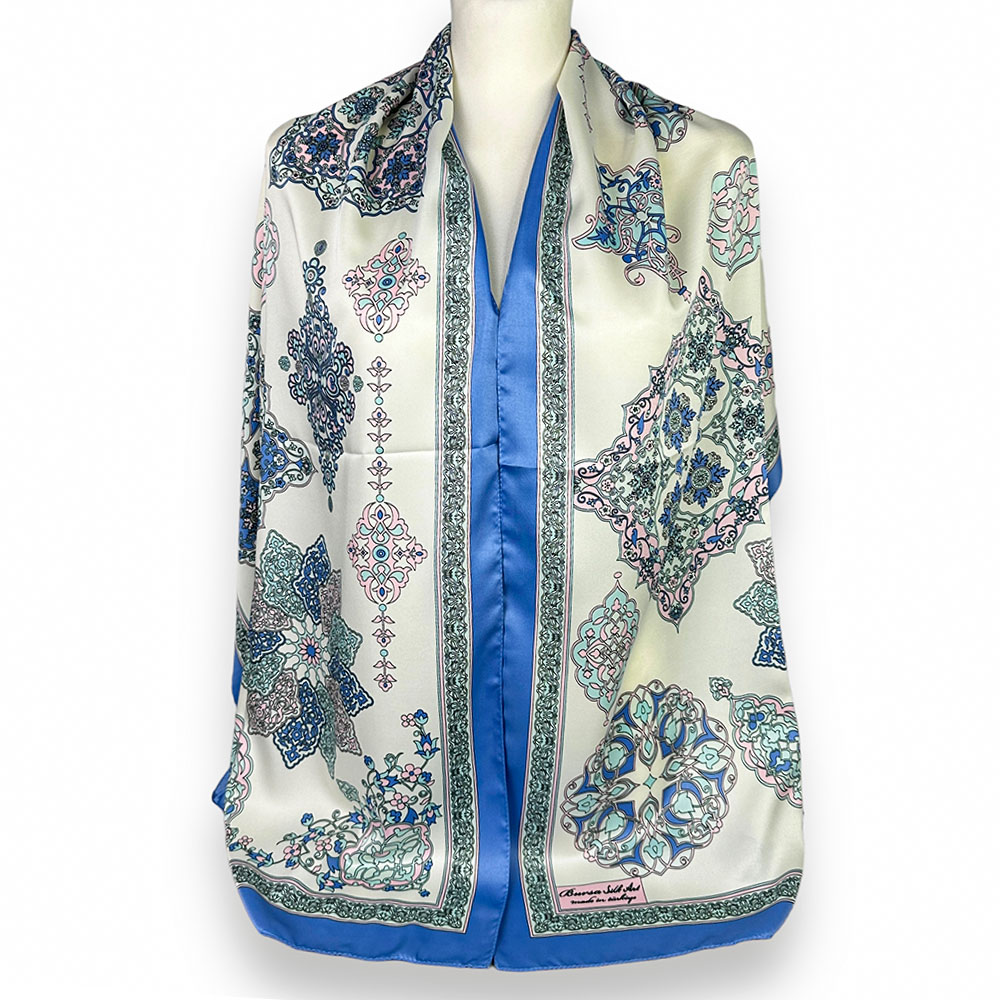 Jeśli Poszukujesz dodatku który doda koloru a jednocześnie klasy i charakteru Twoim stylizacjom postaw na Szale jedwabne w tureckie motywy. Takie dodatki w jednej chwili ożywią każdy rodzaj garderoby . Pasują zarówno do klasycznego płaszcza ale również do białej koszuli .Są bardzo uniwersalne ponieważ można nosić je w każdą porę roku.. Przepiękny oryginalny szal damski w kolorze złotym po prostu ,Musisz mieć w swojej szafie. Te z naszej oferty sprowadzamy z Turcji . Szale produkowane są w tureckim mieście Bursa które słynie z przemysłu tekstylnego , głownie z produkcji szali , ozdobnych poszewek czy ręczników. Te wszystkie orientalne szale charakteryzuje tradycyjne ottomańskie wzornictwo. Bardzo często motywem są kwiaty, tureckie tulipany. Przepiękne połączenie kolorów , wysoka jakość wyrobu oraz orientalne motywy pozwolą Ci poczuć że masz coś wyjątkowego na sobie,.
