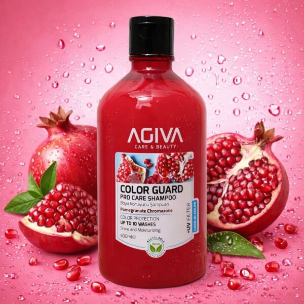 Profesjonalny szampon do włosów farbowanych AGIVA Colour Guard Pro Care to zaawansowana pielęgnacja stworzona z myślą o zachowaniu intensywnego koloru i zdrowego wyglądu włosów po koloryzacji. Dzięki nowoczesnej technologii Liponorm oraz aktywnemu kompleksowi Pomegranate Chromazone, szampon skutecznie chroni pigment przed wypłukiwaniem i utratą blasku.