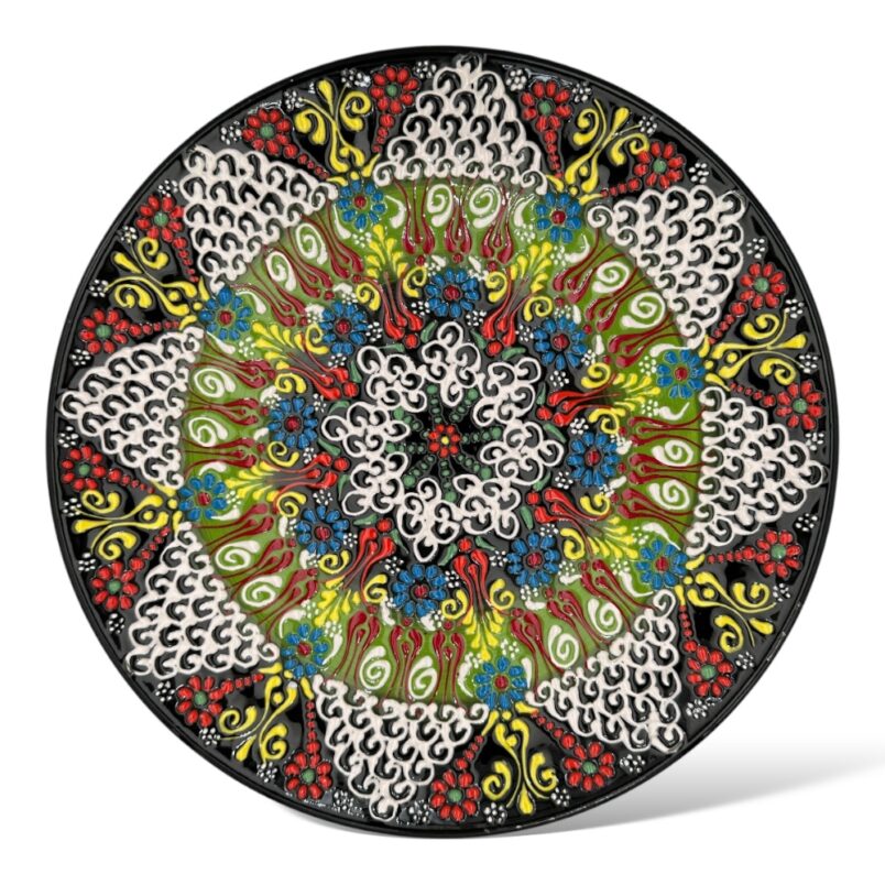 Talerz ceramiczny ręcznie malowany to wyjątkowy naczynie dekoracyjne  a jednocześnie użytkowe .  Jeśli lubisz wprowadzać do swojego pomieszczenia orientalne dodatki  to  właśnie ta propozycja jest dla Ciebie.  Dekoracyjny  ręcznie malowany talerz  wykonana jest tradycyjną turecką sztuką tworzenia ceramiki.  Wykonanie takiego talerza   składa się z kilku etapów. Najważniejszym  z nich jest wypalanie w piecu które trwa do 12 h.  w końcowym procesie miseczki  ceramiczne są pokryte szkliwem i kolejny raz wypalanie są w piecu. . Tureckie wzornictwie ,piękne tureckie motywy – ręcznie malowane   cudowne kolory  sprawia że talerz a będzie stanowiła również ciekawy element dekoracyjny kuchni  czy stołu . Może on stanowić również trafiony prezent dla osoby interesującej się kulturą turecką , bliskowschodnią..