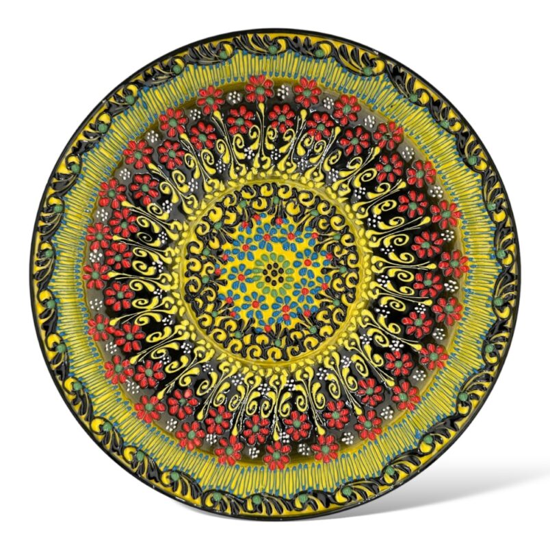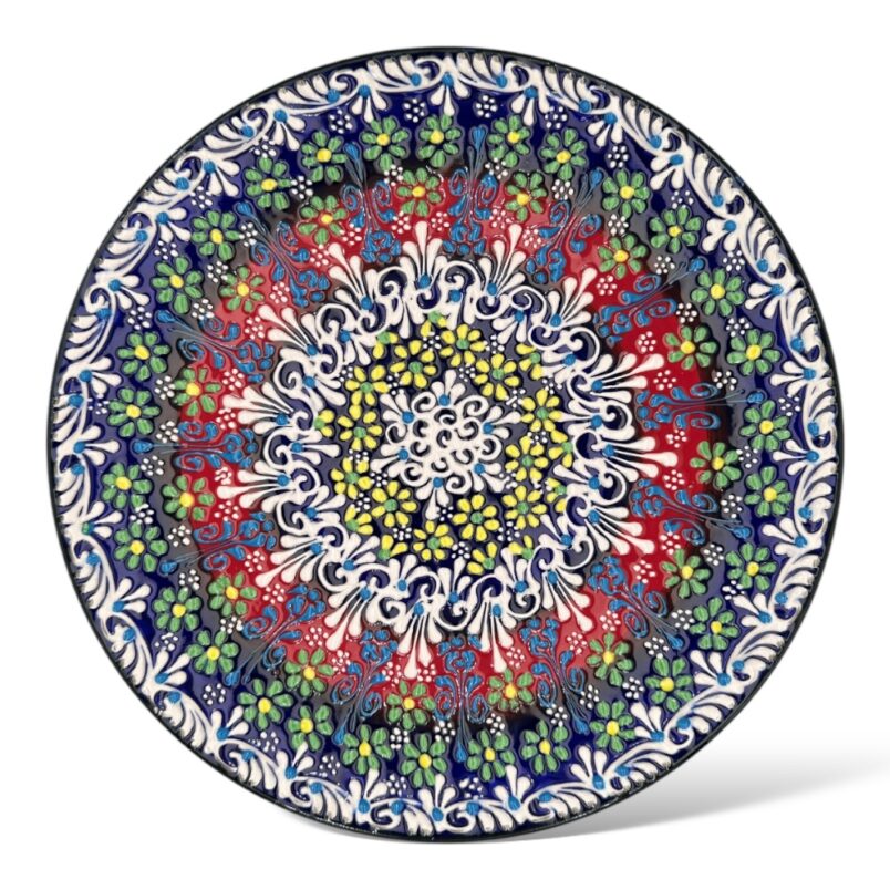 Talerz ceramiczny ręcznie malowany to wyjątkowy naczynie dekoracyjne  a jednocześnie użytkowe .  Jeśli lubisz wprowadzać do swojego pomieszczenia orientalne dodatki  to  właśnie ta propozycja jest dla Ciebie.  Dekoracyjny  ręcznie malowany talerz  wykonana jest tradycyjną turecką sztuką tworzenia ceramiki.  Wykonanie takiego talerza   składa się z kilku etapów. Najważniejszym  z nich jest wypalanie w piecu które trwa do 12 h.  w końcowym procesie miseczki  ceramiczne są pokryte szkliwem i kolejny raz wypalanie są w piecu. . Tureckie wzornictwie ,piękne tureckie motywy – ręcznie malowane   cudowne kolory  sprawia że talerz a będzie stanowiła również ciekawy element dekoracyjny kuchni  czy stołu . Może on stanowić również trafiony prezent dla osoby interesującej się kulturą turecką , bliskowschodnią..