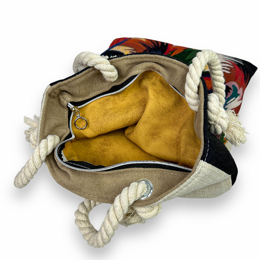 Turecka kolorowa torebka tekstylna     to produkt wysokiej jakości , który sprowadzamy prosto z Turcji – kraju który słynie na całym świecie z produkcji tekstyliów. Torba wykonana jest z tkaniny gobelinowej oraz bawełny . Jest gruba ,na podszewce , z jedną pojemna komorą . Idealnie sprawdzi się podczas zakupów , Oryginalny wzór – Oko Proroka , przepiękne połączenie kolorów oraz staranne wykonanie sprawia że prezentowana torba  turecka  nie będzie tylko zwykła torbą materiałową ale oryginalnym dodatkiem do Twojej stylizacji . Tył torby to jednolity  jasny kolor.