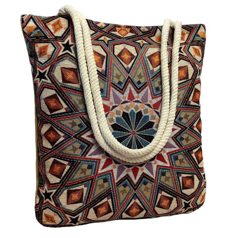 Turecka kolorowa torebka shopper to produkt wysokiej jakości , który sprowadzamy prosto z Turcji – kraju który słynie na całym świecie z produkcji tekstyliów. Torba wykonana jest z tkaniny gobelinowej oraz bawełny . Jest gruba ,na podszewce , z jedną pojemna komorą . Idealnie sprawdzi się podczas zakupów , Oryginalny wzór – Kwiaty, przepiękne połączenie kolorów oraz staranne wykonanie sprawia że prezentowana torba turecka nie będzie tylko zwykła torbą materiałową ale oryginalnym dodatkiem do Twojej stylizacji . Tył torby to jednolity jasny kolor.