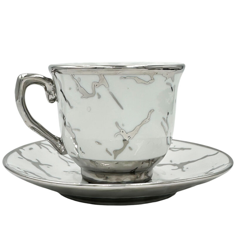 Filiżanka składa się z trzech części . Talerzyka , koszyczka z uszkiem oraz porcelanowej filiżanki w formie wkładku Porcelanowy wyjmowany wkład filiżanki pozwala na łatwiejsze mycie filiżanki . Filiżanka ze spodkiem w takim stylu to nie tylko użytkowe naczynie ale również oryginalna dekoracja . Możesz udekorować nią swoją kuchnię czy salon .Wyjątkowe wzornictwo nadaje całości orientalnego wyglądu . Pojemność filiżanki jest odpowiednia do kawy po turecku ale również świetnie nada się do kawy espresso .
